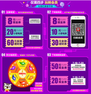 如果你已经是国美在线会员?那更好啦:国美在线的满减优惠!会员还可参加积分抽奖活动,100%中奖,1积分秒变100元,更可用积分顶现金,1积分可当1元花!