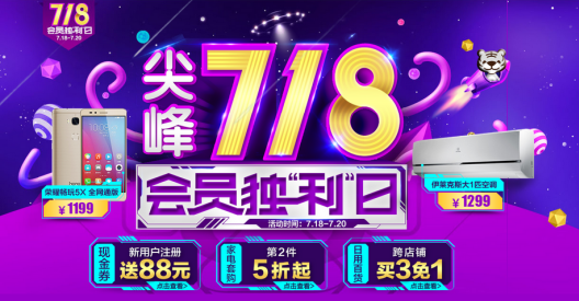 7月18日0时开始,电脑3C、彩电冰洗、百货日用品等多个品类多款爆款产品将开启超低价模式。从0点开始的8小时内,国美在线会员登录网站,即可抢购超低价的超值产品!伊莱克斯大1匹空调低至1299元,荣耀畅玩5X低至1199元,iPhone5S低至1999元!起价就比别家低,会员还有超值折扣专享!这个独利日,国美在线会员一定乐不停!