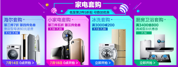 这个夏天,你还在为装修发愁吗?你考虑更换全新家电吗?有没有考虑换台冰箱洗衣机?国美在线家电套购,各类正品大牌,享受套购满减或第二件优惠政策,7月18日起更可享受第二件5折起的超低折扣!海尔第二件7折,第四件免单;小家电第三件免单;冰系套购满3000减200……对了,以上优惠都可叠加优惠使用!